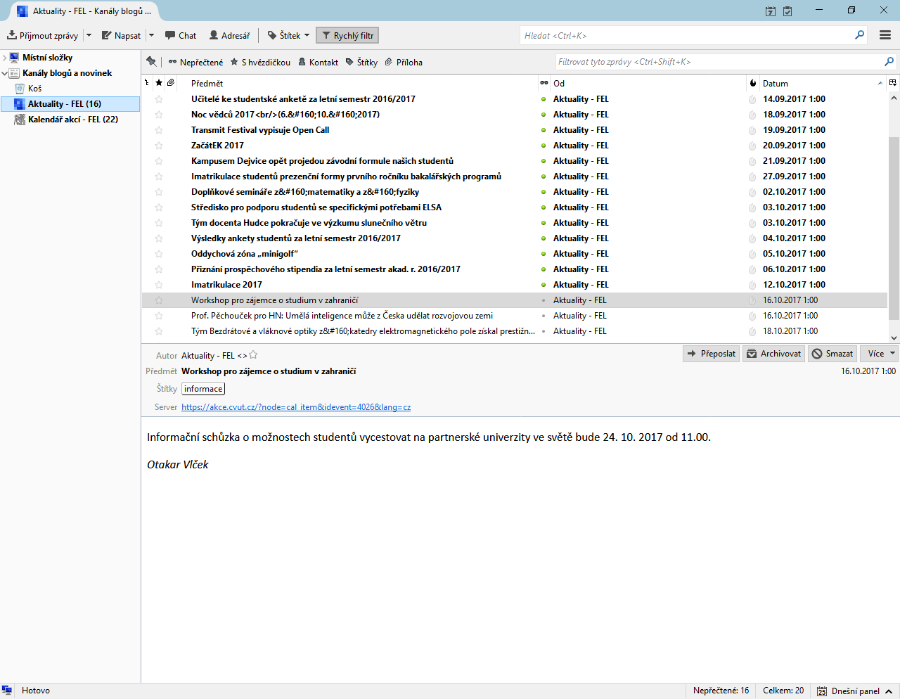 Poznámka: Postup se může mírně lišit v závislosti na konkrétní RSS čtečce.